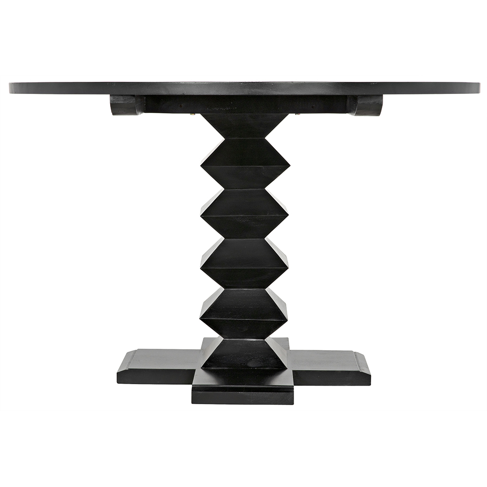 Enjoy the Zig-Zag Dining Table - 48" Diameter - Hand Rubbed Black in your home today! Handcrafted of pale or hand rubbed black mahogany, this dining collection is defined by the refinement of its table legs. The distinct effect is created by our artisans who showcase the science of beauty by utilizing unique geometric shapes to achieve the unique Zig Zag look.