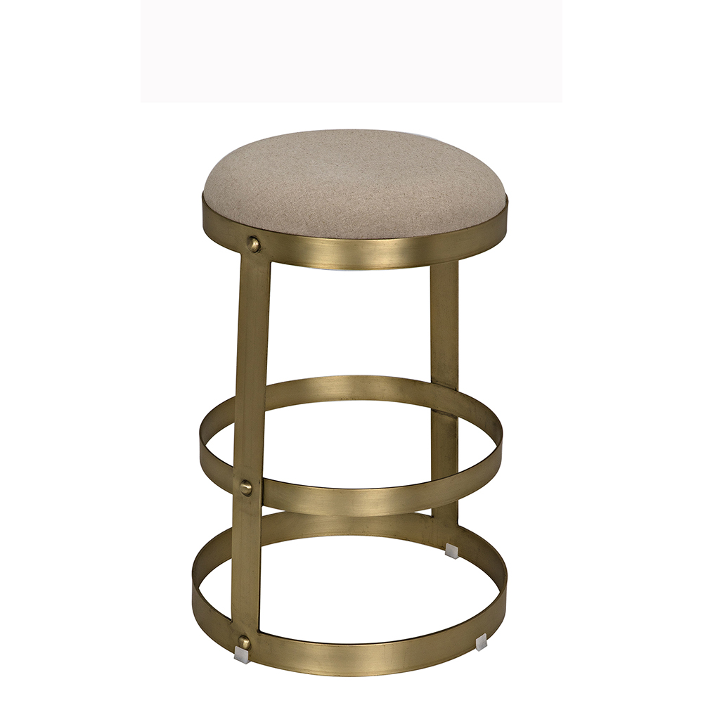 Enjoy the Dior Counter Stool - Metal With Brass Finish in your home today! Three thick circular bands of metal form this stool's base and footrest, and support its soft linen seat. It comes in your choice of a black or antique brass finish, and in both counter and bar heights.