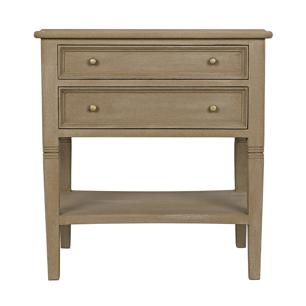 Enjoy the Oxford 2-Drawer Side Table Weathered in your home today! Intriguing design elements, like decorative carving atop tapered legs and two slim drawers, elevate the traditionally inspired lines of this artisan crafted solid mahogany side table. Available in three finishes, each was chosen to highlight the hardwoods natural grain.