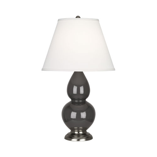 Robert Abbey Small Double Gourd Table Lamp - Antique Silver - Ash - Pearl Dupioni Fabric Shade