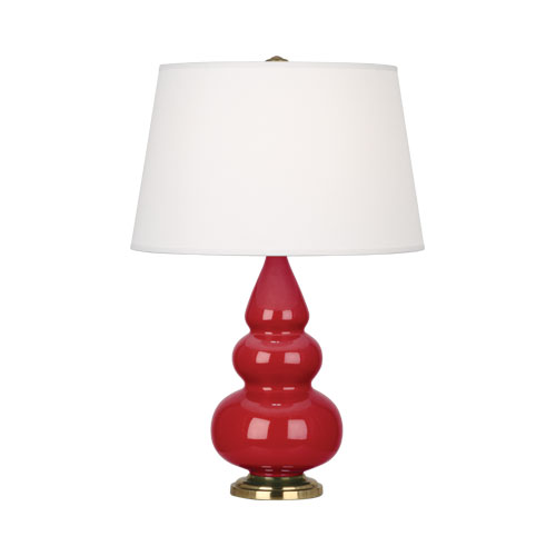 Robert Abbey Small Triple Gourd Table Lamp - Antique Brass - Ruby Red - Pearl Dupioni Fabric Shade
