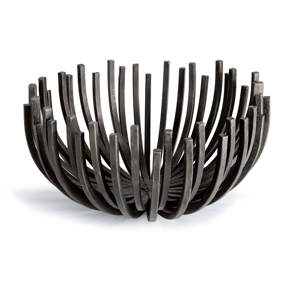 Enjoy the Webbed Bowl Circle - Blackened Iron in your home today! This sculpted webbed bowl finished in the enduring blackened iron seamlessly merges form and function. With its sculpted design, it can be a centerpiece for any room by itself, or filled with your favorite decor pieces. *Hand crafted with natural and semi-precious materials are products of nature. Any variations in color, pattern, texture, size and veining or subtle differences due to unique craftmanship should not be considered as a defect.