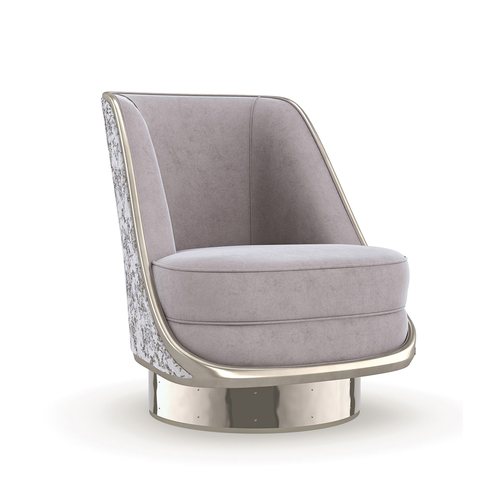 Enjoy the Go For A Spin Chair - Dark in your home today! Svelte and sophisticated on a gold metal banded base, this swivel chair epitomizes the essence of Caracole glamour. Its softly contoured silhouette beckons to be admired in a luxurious mix of materials and finishes. A contrasting cut velvet wrapping the back adds a classic detail, complemented by a pale gray lavender velvet on the inside and a shimmering Silver Shadow finish. Makes an alluring statement on its own, even more dramatic in pairs.