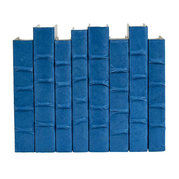 Enjoy the E Lawrence Turquoise Parchment Bound Books in your home today! book bound in Handmade dark Turquoise Parchment with Raised Bands - priced by the book 8.5-9.5" blank neutral covers Books are priced individually and sold in a minimum quantity of three. ORDERS PLACED FOR LESS THAN 3 BOOKS WILL NOT BE PROCESSED. Sizes and style of each book within a collection will vary per order. The picture shown depicts all the book styles in one collection.