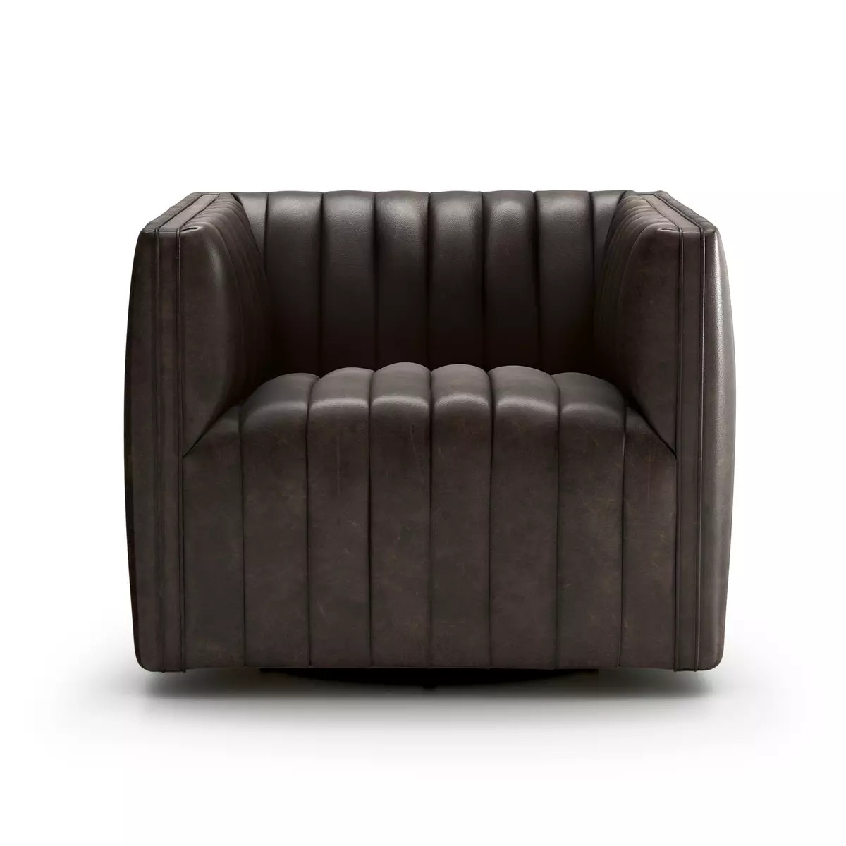 Enjoy the Augustine Swivel Chair - Deacon Wolf in your home today! For an updated take on the classic library chair, velvety poly-blend upholstery adopts a deep navy hue and heavy channeling atop 360-degree swivel.