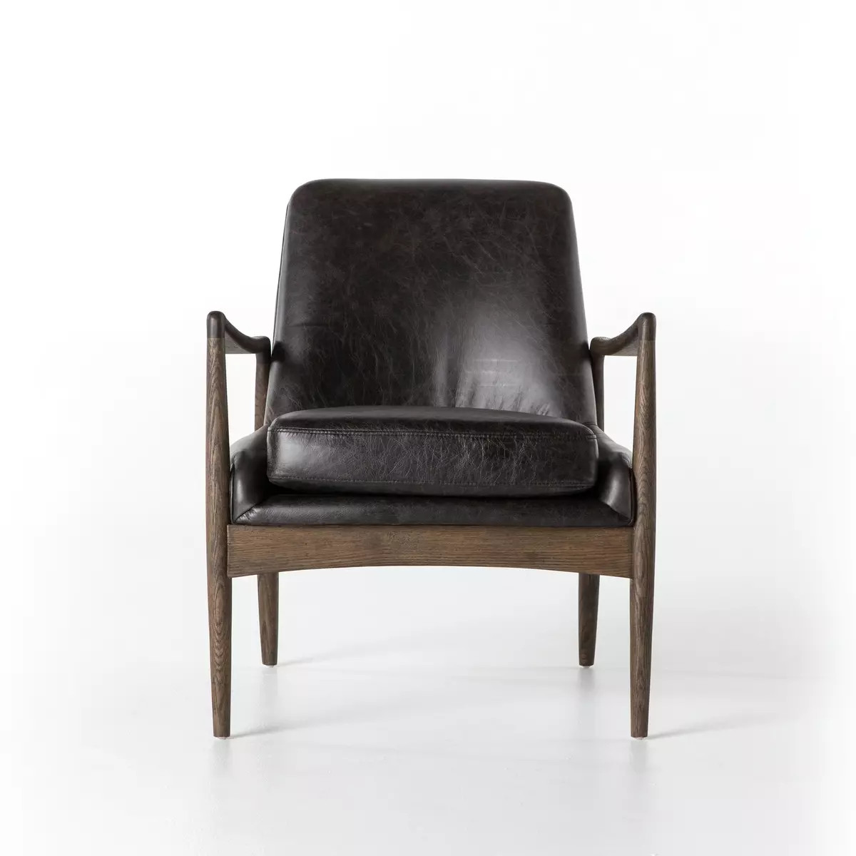 Enjoy the Braden Chair - Durango Smoke in your home today! Dramatic arms and a deeper seat offer relaxation with mid-century modern sophistication. Sculpted frame adds an architectural feel to rich, black top-grain leather.