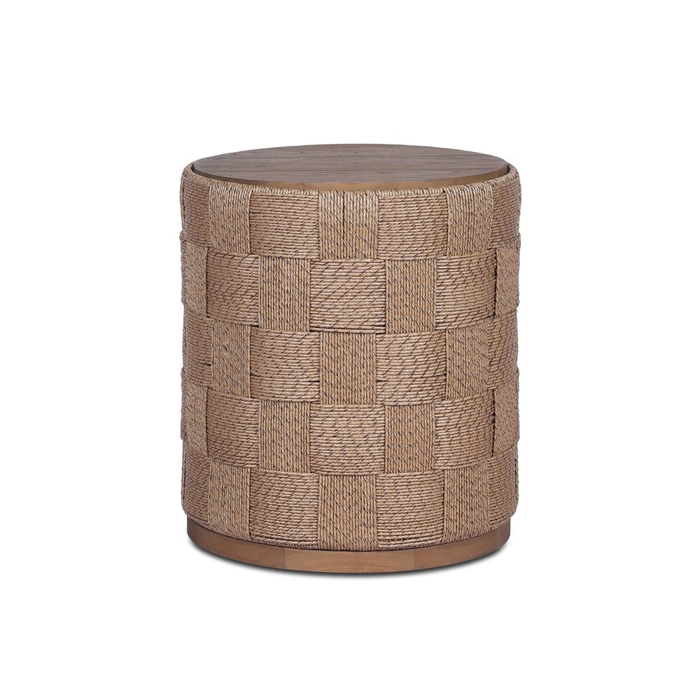 Enjoy the Brandt Outdoor End Table in your home today! Mixed materials make the table — indoors and out. Made from all-weather wicker, an outdoor-friendly end table features a chunky box-woven frame and inset teak top, for a texture-rich take on outdoor styling. Cover or store indoors during inclement weather and when not in use.