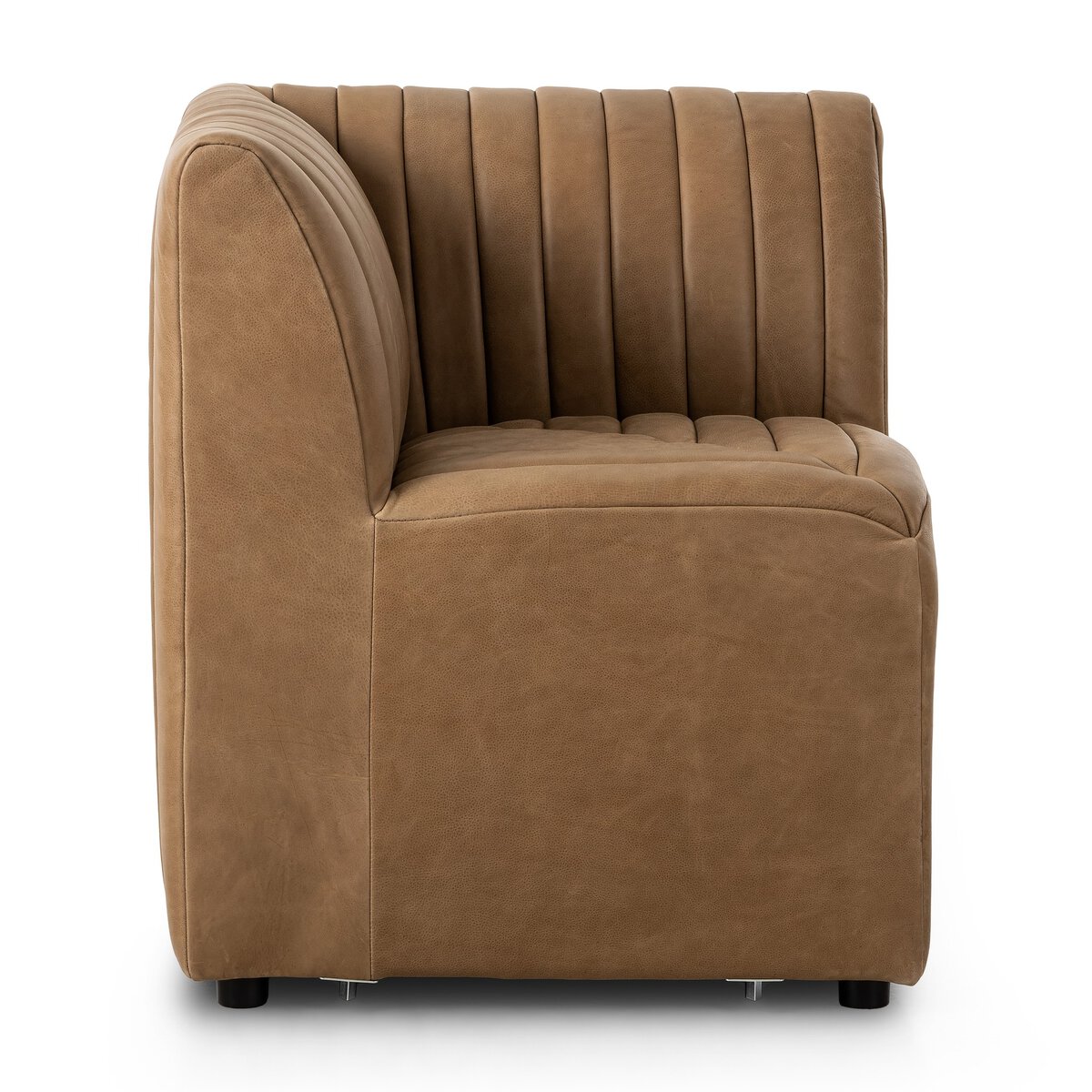 Enjoy the BYO: Augustine Dining Banquette - Palermo Drift - Corner Chair in your home today! The armless dining chair is elevated with tan top-grain leather with a beautifully pronounced grain, plus dramatic channeling for a linear look. Corner piece to matching banquette.