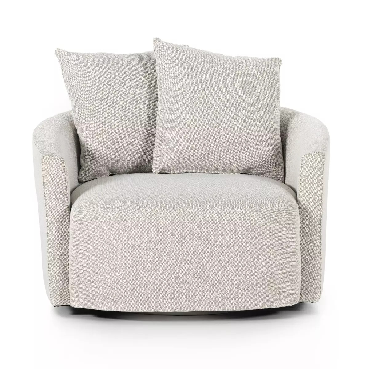 Enjoy the Chloe Swivel Chair - Delta Bisque in your home today! Neutral performance fabric covers a dramatic U shape for a sink-in sit. Throw pillows add a touch of comfort to this 360-degree swivel chair. Performance fabrics are specially created to withstand spills, stains, high traffic and wear, ensuring long-term comfort and unmatched durability.