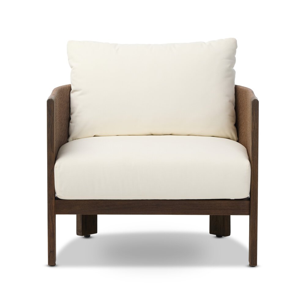 Enjoy the Delancy Outdoor Chair in your home today! Simplicity meets detail. This barrel-backed outdoor chair features a linear woven cording finish, with the simple shaping letting the material shine. Cover or store inside during inclement weather and when not in use.