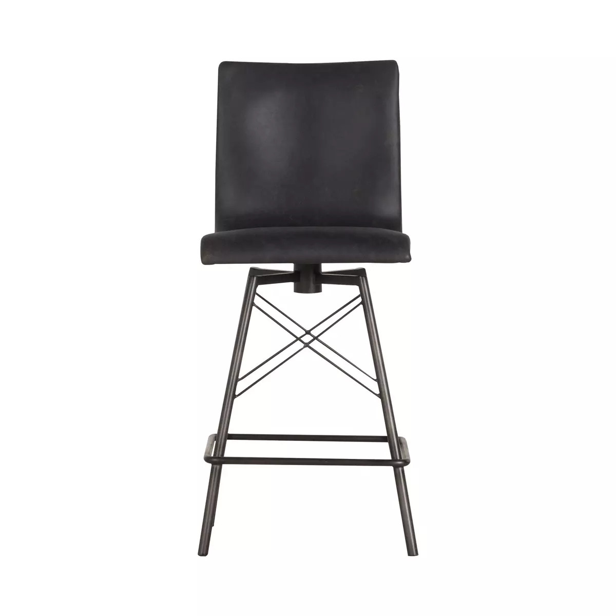 Enjoy the Diaw Counter Stool - Rialto Ebony in your home today! Midcentury styling brings beauty to the bar or breakfast nook. Modern S-curves in distressed black leather swivel 360 degrees above an architectural, black-waxed iron base.
