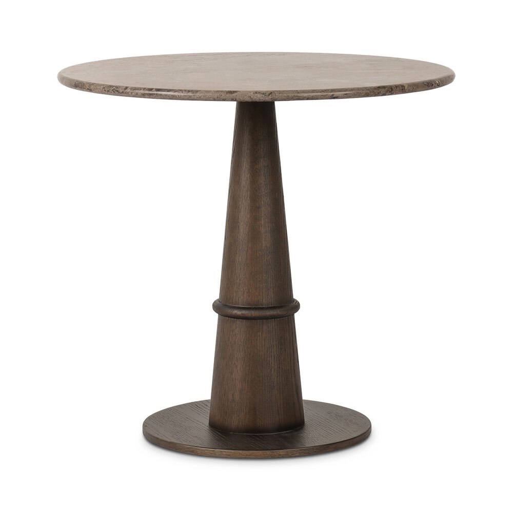 Enjoy the Goetz Bistro Table - Warm Grey Marble in your home today! For a fresh take on traditional tulip shaping, a brown oak base pairs with a solid marble tabletop in a light grey.