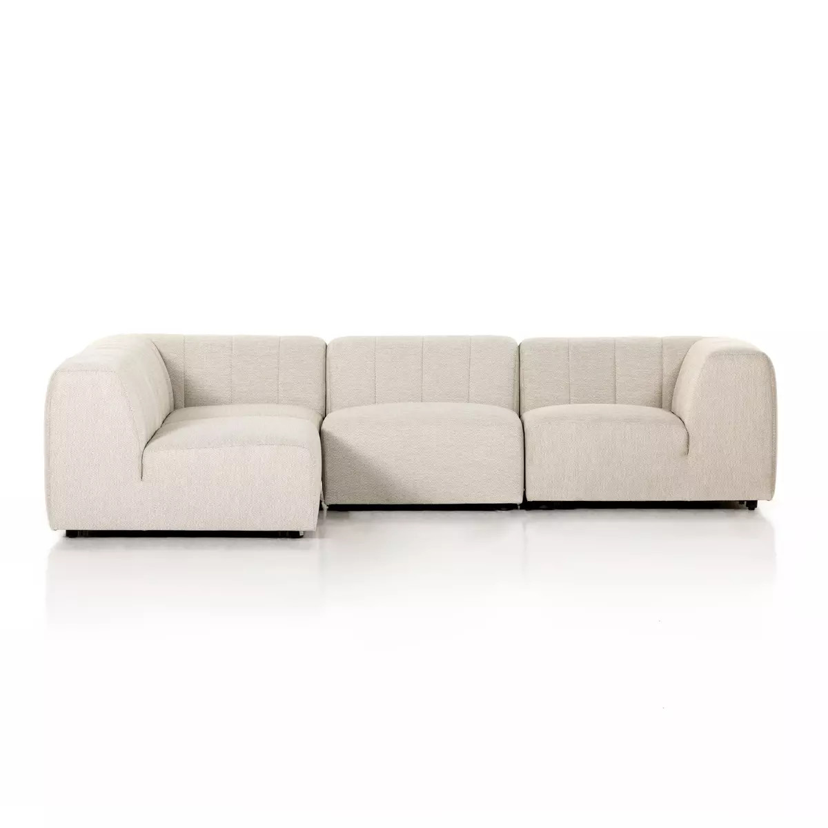 Enjoy the Gwen Outdoor 4 - Piece Sectional - Faye Sand in your home today! Wide, vertical channels and low styling speaks to the Italian influence behind this outdoor-friendly four-piece sectional. Cover or store inside during inclement weather and when not in use.