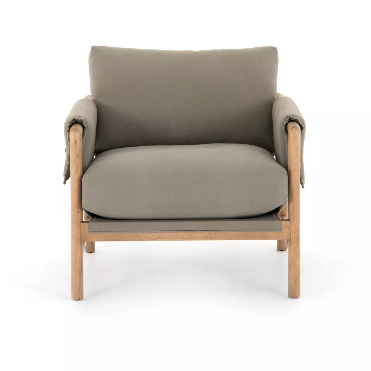 Enjoy the Harrison Chair - Villa Olive in your home today! Details make the chair. With plush cotton-blend upholstery that wraps each arm, faux toggles add an element of interest to luxuriously comfortable mid-century-inspired seating in a light olive hue, with softly sculpted parawood framing carrying out a beautifully neutral look.