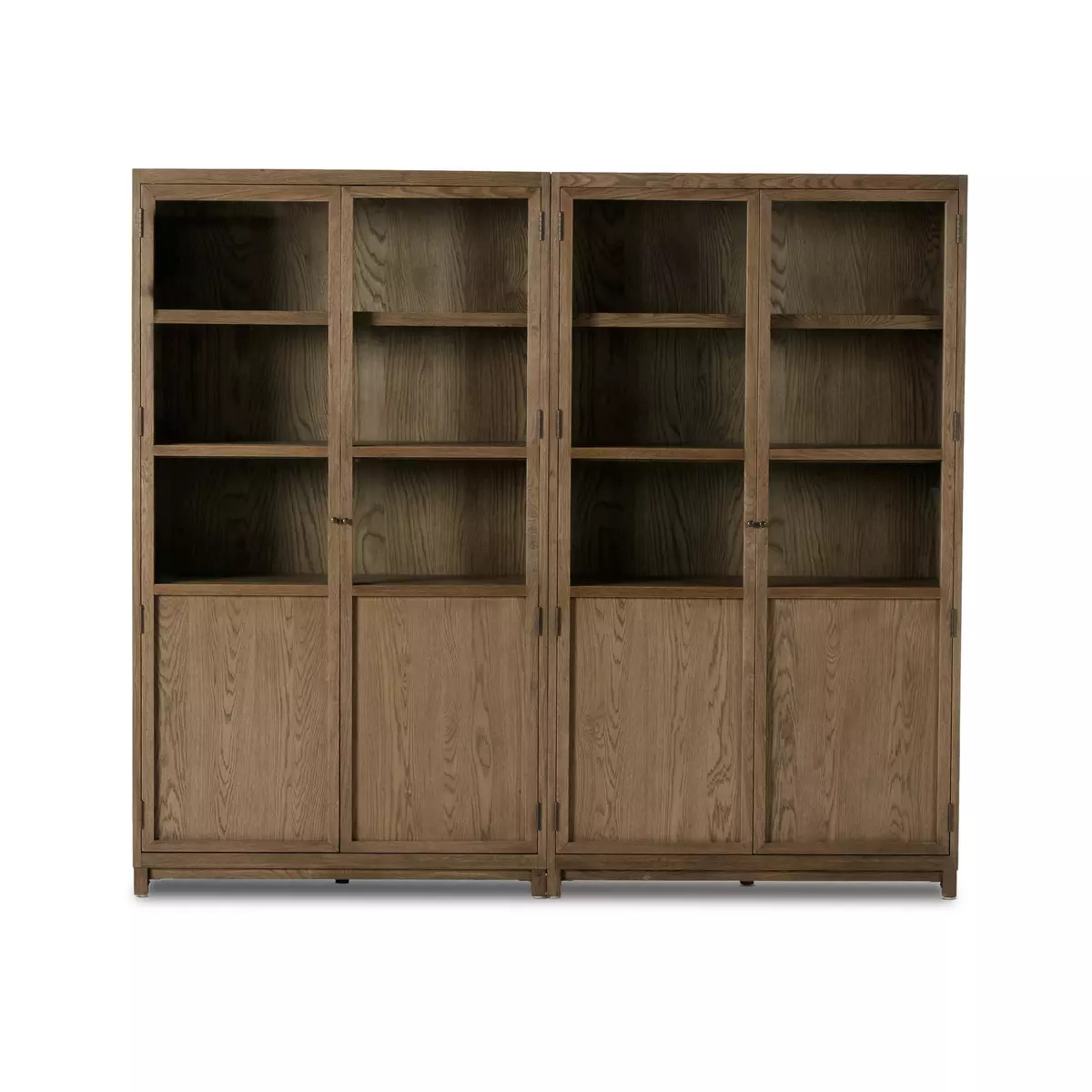 Enjoy the Millie Panel and Glass Door Double Cabinet - Drifted Oak Solid in your home today! Drifted oak frames the interior shelving of this double cabinet. Glass doors allow for prized possessions to dazzle on full display while spacious cabinets add out-of-view storage.