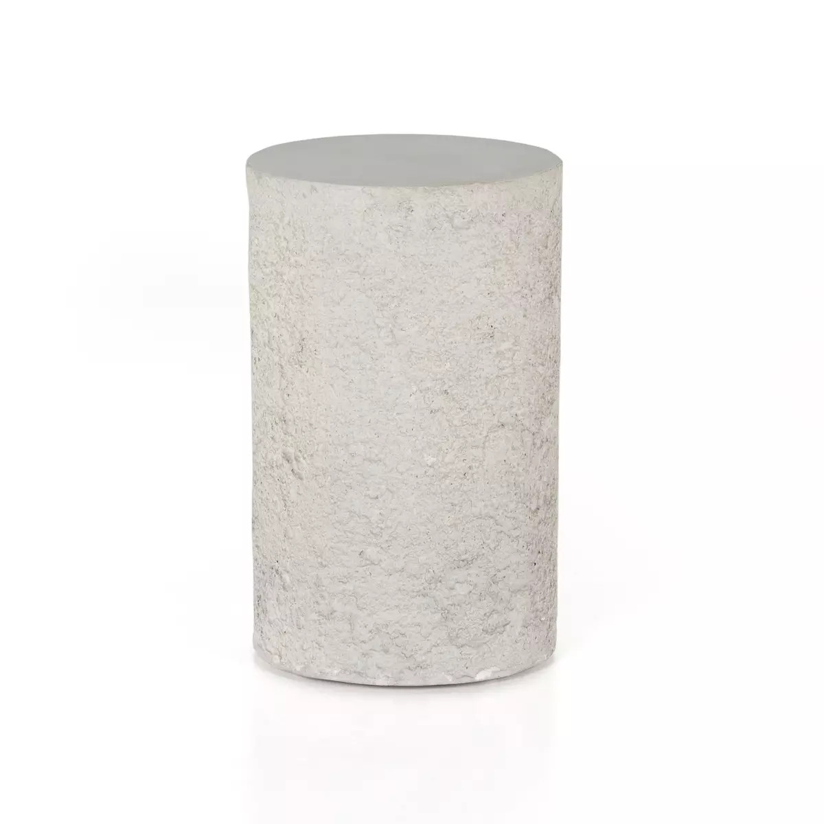 Enjoy the Otero Outdoor Round End Table in your home today! Bring a touch of industrialism to outdoor styling. A rounded end table of solid white concrete features raw edging for texture and novelty alike. Cover or store indoors during inclement weather and when not in use.