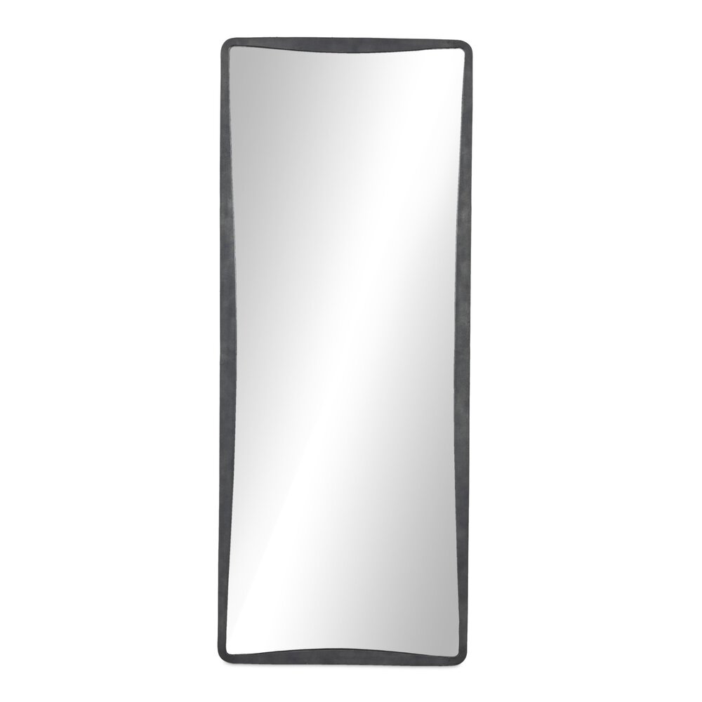 Enjoy the Regis Floor Mirror - Hammered Grey in your home today! A classic floor mirror shape with a subtle hourglass bow takes inspiration from elegant calligraphy. Finished in a hammered grey, substantial cast aluminum framing is balanced by tapered corners.