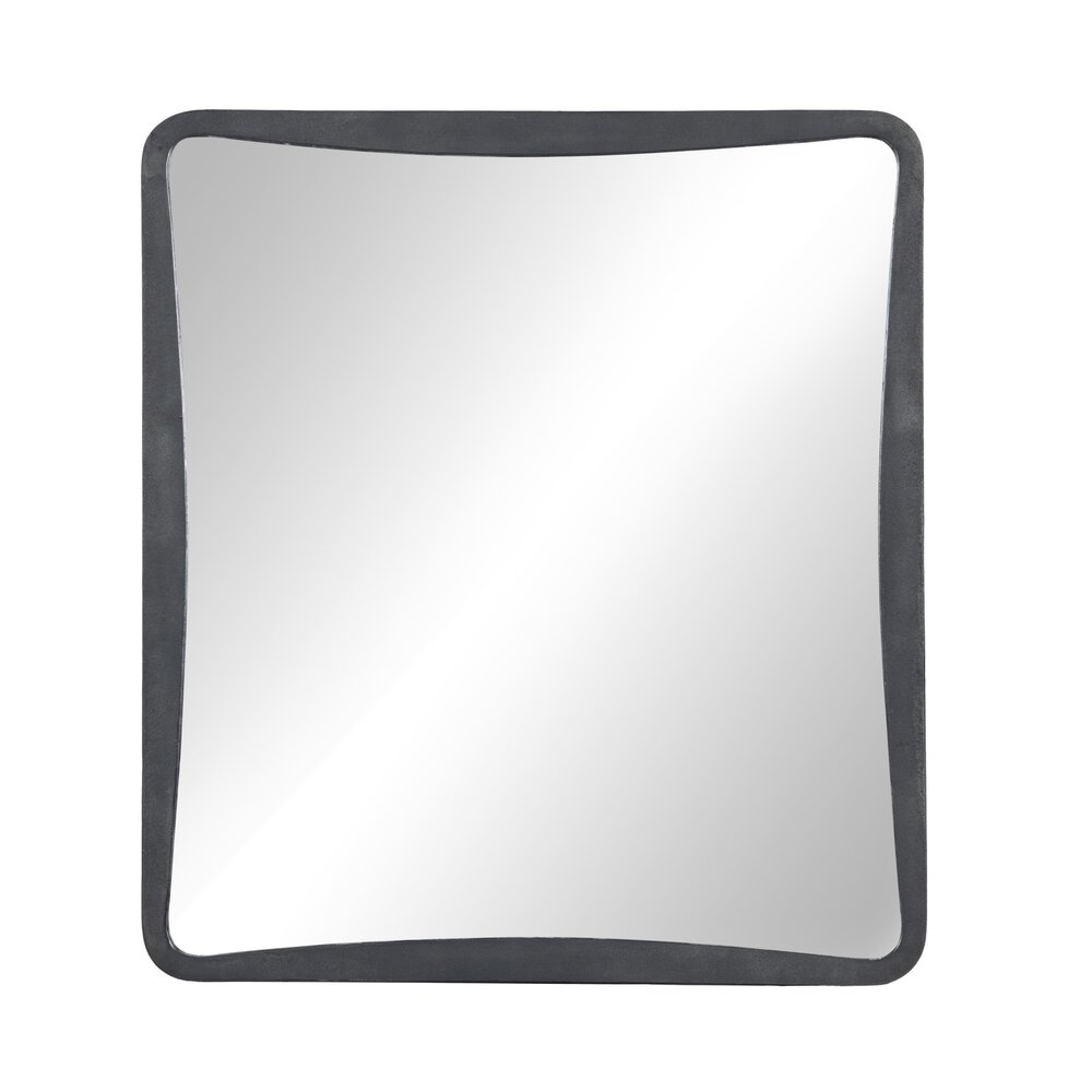Enjoy the Regis Wall Mirror in your home today! A classic rectangle is reimagined with a subtle hourglass bow, taking inspiration from elegant calligraphy. Substantial cast aluminum framing is balanced by tapered corners and finished in a hammered grey.