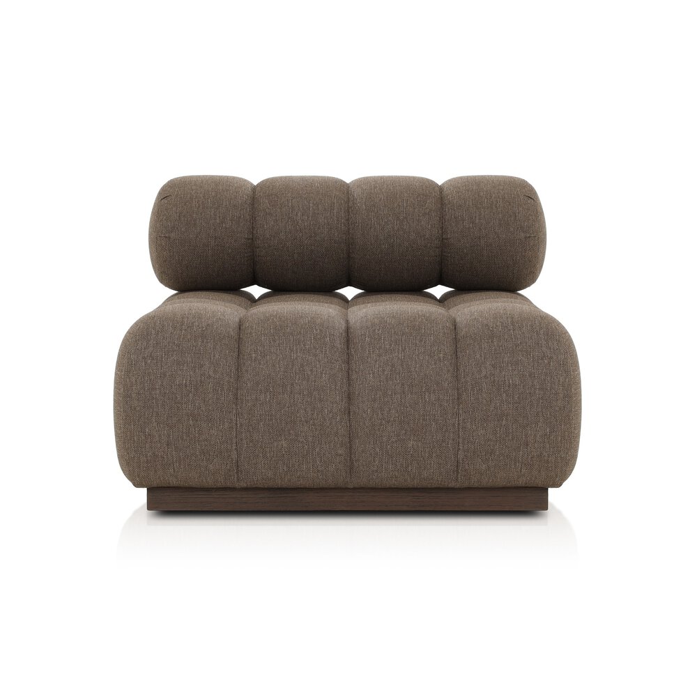 Enjoy the Roma Outdoor Swivel Chair in your home today! A modern take on midcentury Italian design, soft volume and exaggerated proportions fuse for a sculpted look and playful feel. Atop a plinth-style teak 360-swivel base, outdoor-friendly seating features dramatic tufting for a padded sit, indoors and out. Sustainably made with zero waste, luxurious Italian upholstery places a new and unique spin on indoor/outdoor seating, offering soft, durable fabric that's highly resistant to sun, stains, mold and abrasion. Cover or store indoors during inclement weather and when not in use.