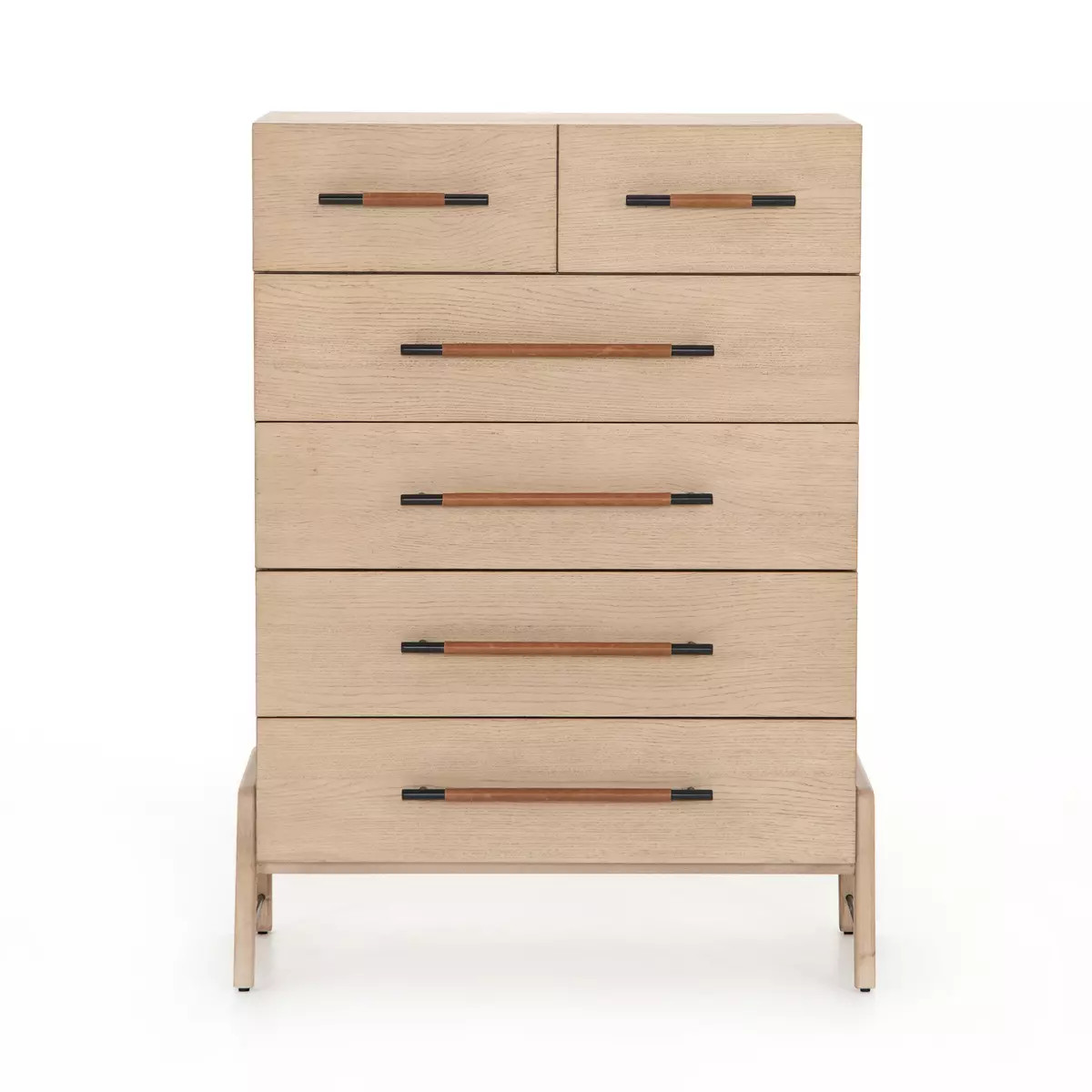Enjoy the Rosedale 6 Drawer Tall Dresser - Yucca Oak in your home today! Light-finished oak forms a clean silhouette for six spacious drawers with iron hardware wrapped in tan top-grain leather.