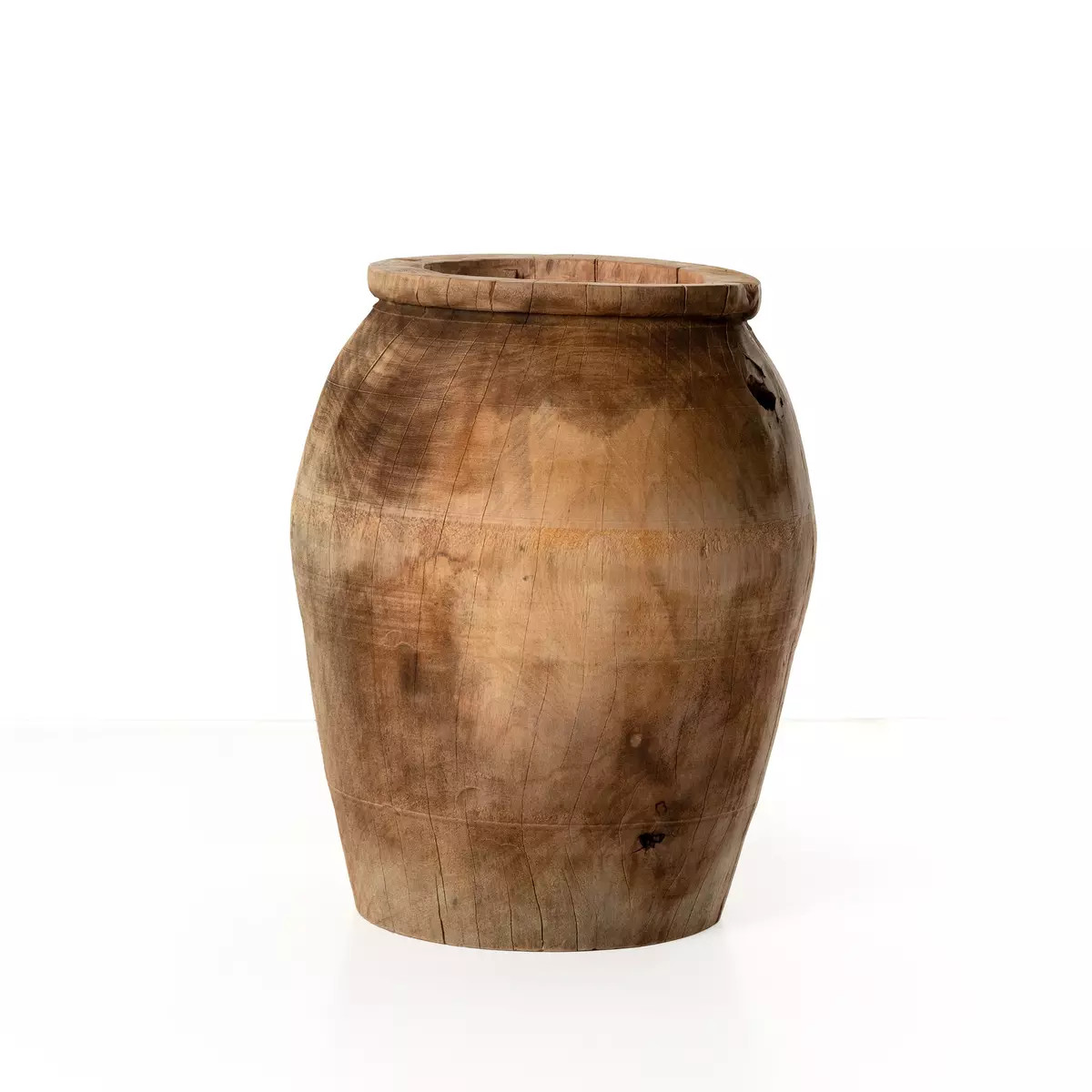 Enjoy the Toledo Vessel in your home today! Vintage-finished reclaimed wood shapes this large decorative jar. Perfect for displaying dried florals on a sideboard or atop a dresser. Not water-tight; for decorative use only. Each item is wholly unique, with natural cracks, wear and color variance reflective of handmade origin.
