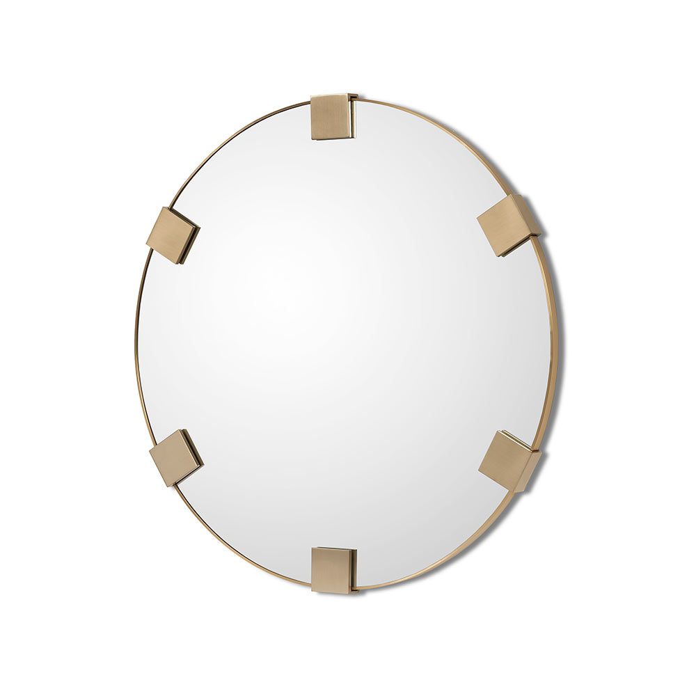 Enjoy the Nippon Round Mirror 36" in your home today! Evoking a clip frame, the Nippon Round Mirror makes a fabulous statement with its pairing of mirror and stainless steel finished in brushed brass.