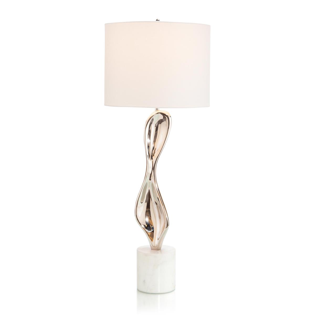 Enjoy the Dancing Pod Table Lamp in your home today! This table lamp showcases an art sculpture in polished nickel on a white marble base.