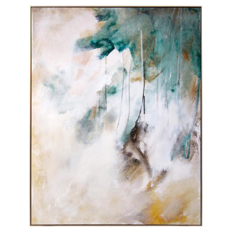 Enjoy the Jason Lott's Neptune in your home today! Stunning teals and golds flow through this image by artist Jason Lott. The piece features a high-gloss vitreous finish and is surrounded by a silver molding.