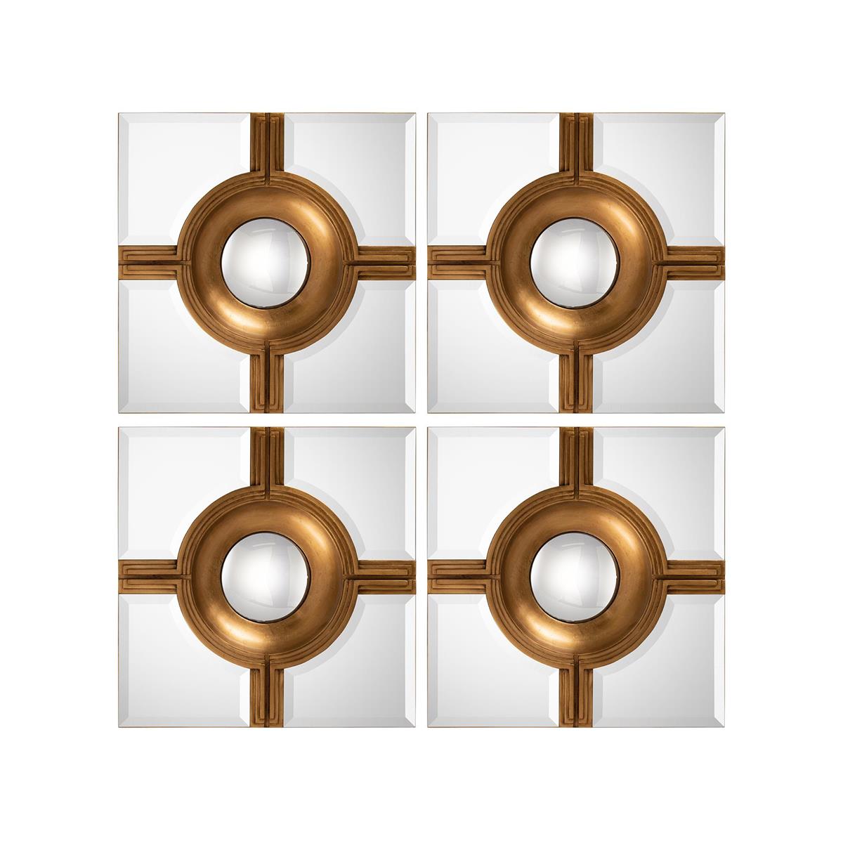 Enjoy the Reflections Mirrors - Set Of Four in your home today! In this set, there are four beautifully beveled, square mirrors, each enhanced in the center with a convex mirror. Framed in a New World gold, each convex mirror adds dimension with its intere