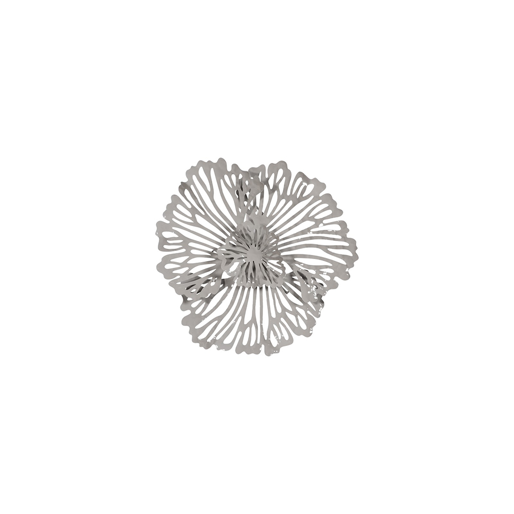 Enjoy the Flower Wall Art - Extra Small - Gray - Metal in your home today! The lacy artistry of the Extra Small Gray Flower Wall Art will make a dramatic statement, whether on its own or in an arrangement of many. A crisp gray color together with an intricate floral pattern delivers a dose of beauty to any space. The filigree effect of the profile, which is cut from metal and powder coated for a rich, lasting finish, will throw textural shadows on surrounding surfaces that will evolve with the movement of the sun. In addition to gray, these wall flowers are available in a variety of colors and sizes. Each of the offerings in this collection reflects the ethos that Phillips Collection personifies: modern organic. Disclaimer: The metal used in this piece is malleable and can be maneuvered to fold out from the wall more or less, thus changing the overall dimensions. The user can make adjustments on site if a different depth is desired. Please note the hardware on the back of the piece is security hardware ready mounting brackets.