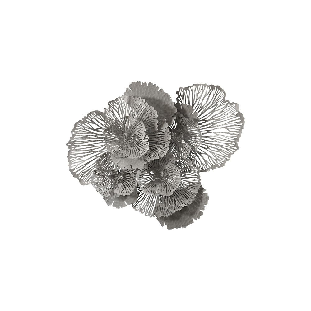 Enjoy the Flower Wall Art - Large - Gray - Metal in your home today! The lacy artistry of the Large Gray Flower Wall Art will make a dramatic statement on its own; arrange it alongside a variety of different sizes in the same good-looking gray, and you bring a room a massive dose of loveliness. The filigree effect of the profile, which is cut from metal and powder coated for a rich, lasting finish, will throw textural shadows on surrounding surfaces that will evolve with the movement of the sun. If gray is not the perfect color for a space, we offer the floral wall sculptures in a number of colors, from copper, blue and yellow to red, black and ivory. Each of the offerings in this collection reflects the ethos that Phillips Collection personifies: modern organic. Disclaimer: The metal used in this piece is malleable and can be maneuvered to fold out from the wall more or less, thus changing the overall dimensions. The user can make adjustments on site if a different depth is desired. Please note the hardware on the back of the piece is security hardware ready mounting brackets.