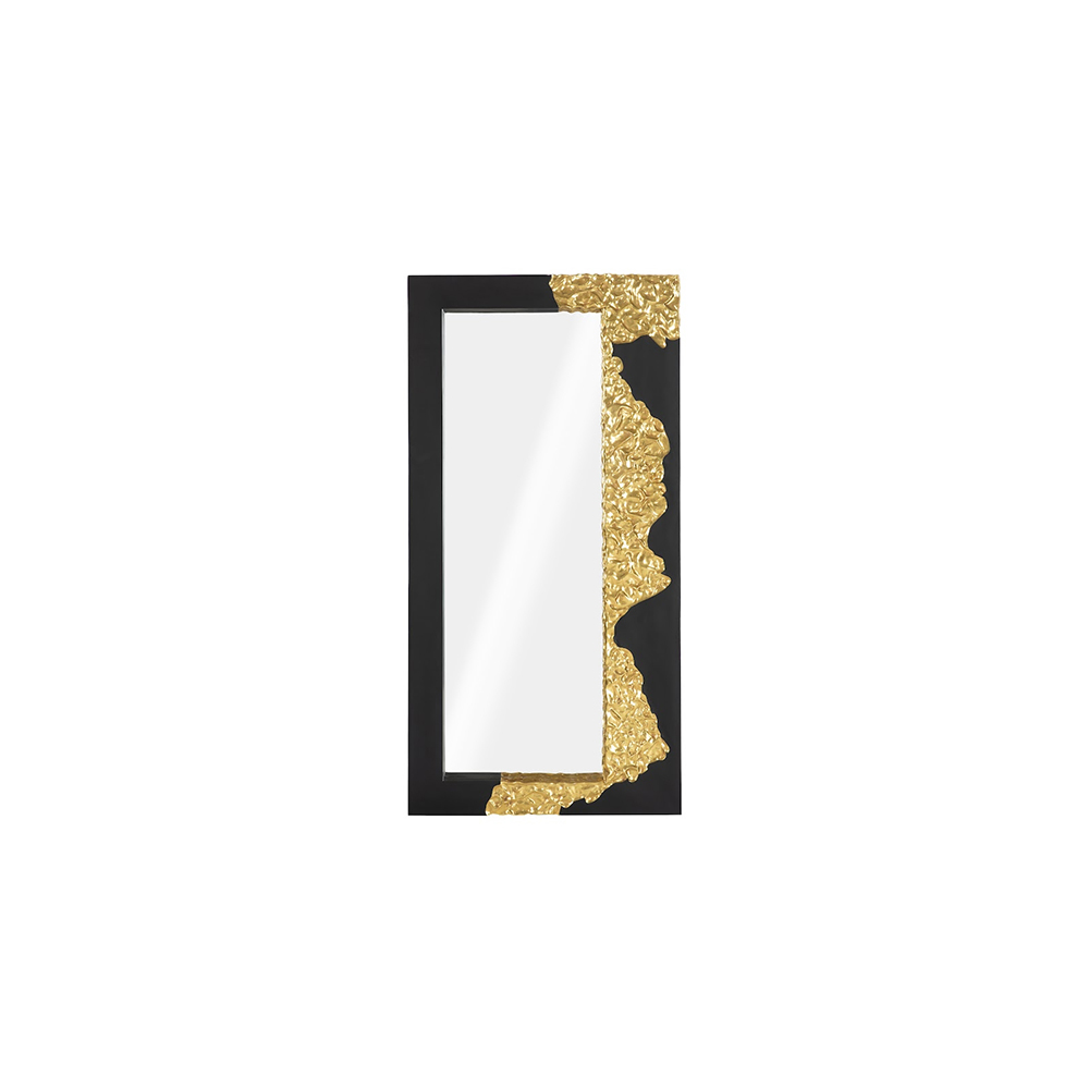 Enjoy the Mercury Mirror - Rectangle - Black - Gold Leaf in your home today! The otherworldly pattern that flows along the frame of the Mercury Rectangular Black Gold Mirror makes a statement in its randomness, mimicking the surface of some far-away planet but with much greater style. Made of composite in a intermingling of black and gold leaf finishes, a design detail of note is how the decorative mirrorÂ’s frame is fluted where the gold pattern flows along it. Disclaimer: The gold leaf finish applied to our products is known for its luxurious metallic appearance. However, this finish can be susceptible to scratching if not handled carefully. Gold leaf is a delicate material; abrasions may occur during routine use or contact with abrasive surfaces. To maintain the pristine condition of your gold leaf-finished items, we strongly recommend using coasters or protective pads when placing objects on the surface. These coasters act as a safeguard, minimizing the risk of scratches and preserving the beauty of the gold leaf finish. While we strive to provide durable and high-quality finishes, it's important to acknowledge that any abrasive or sharp objects in contact with the surface may lead to unintentional damage. Therefore, please be careful and follow proper care guidelines to ensure the longevity of your gold leaf-finished products.