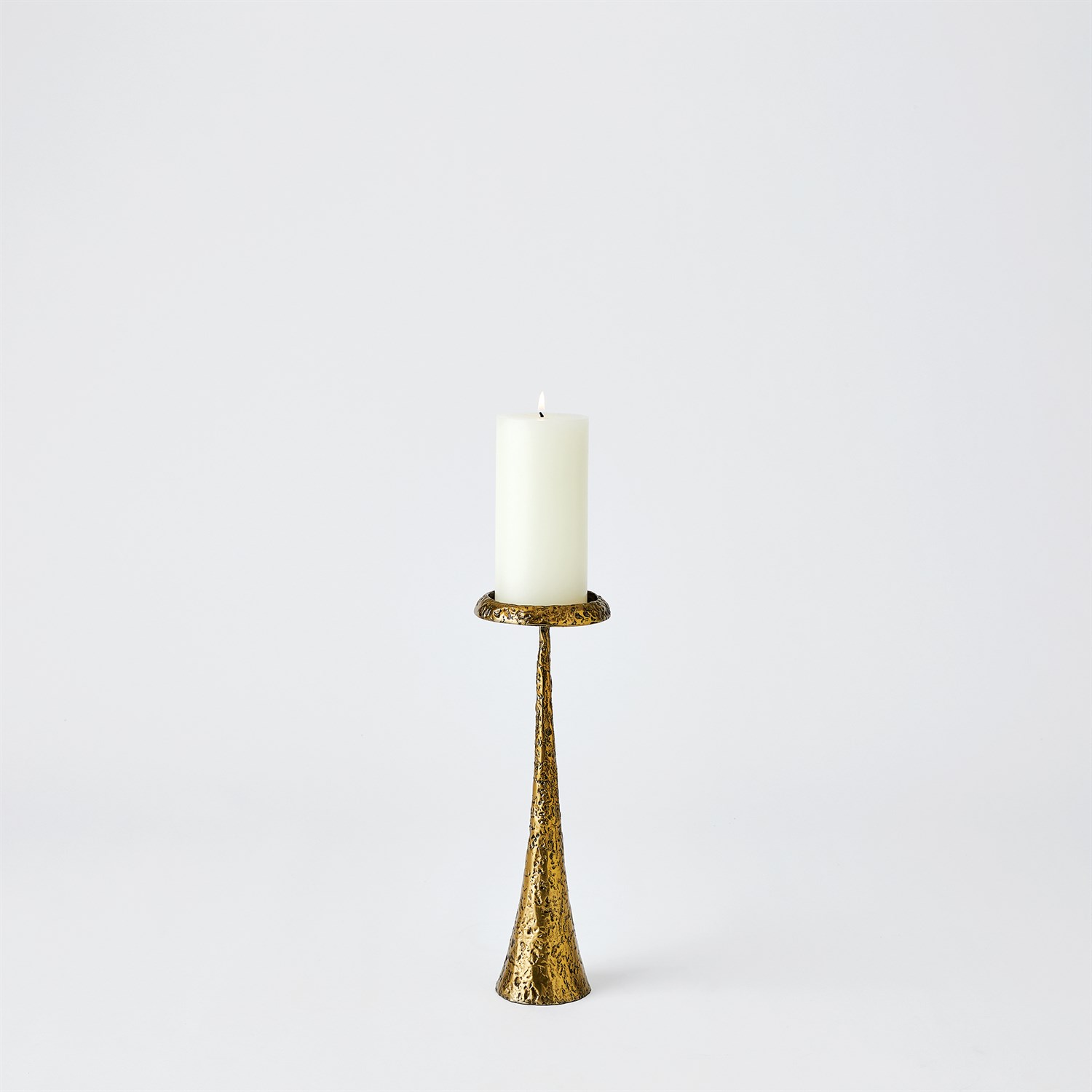 Enjoy the Beacon Candle Holder - Brass - Sm in your home today! Uniquely tapered and textured finish, our Beacon Candle Holders are cast from iron and finished in antique brass. Offered in three sizes, each holding a 3ftDia. pillar candle