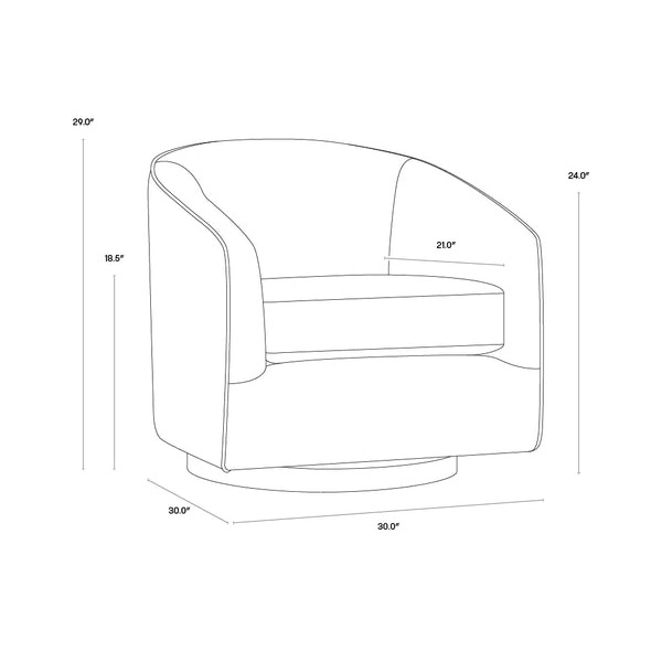 29"H x 30"D x 30"W; Arm Height: 24H"; Seat Height: 18.5H"; Seat Depth: 21D"; Seat Width: 21.25W"