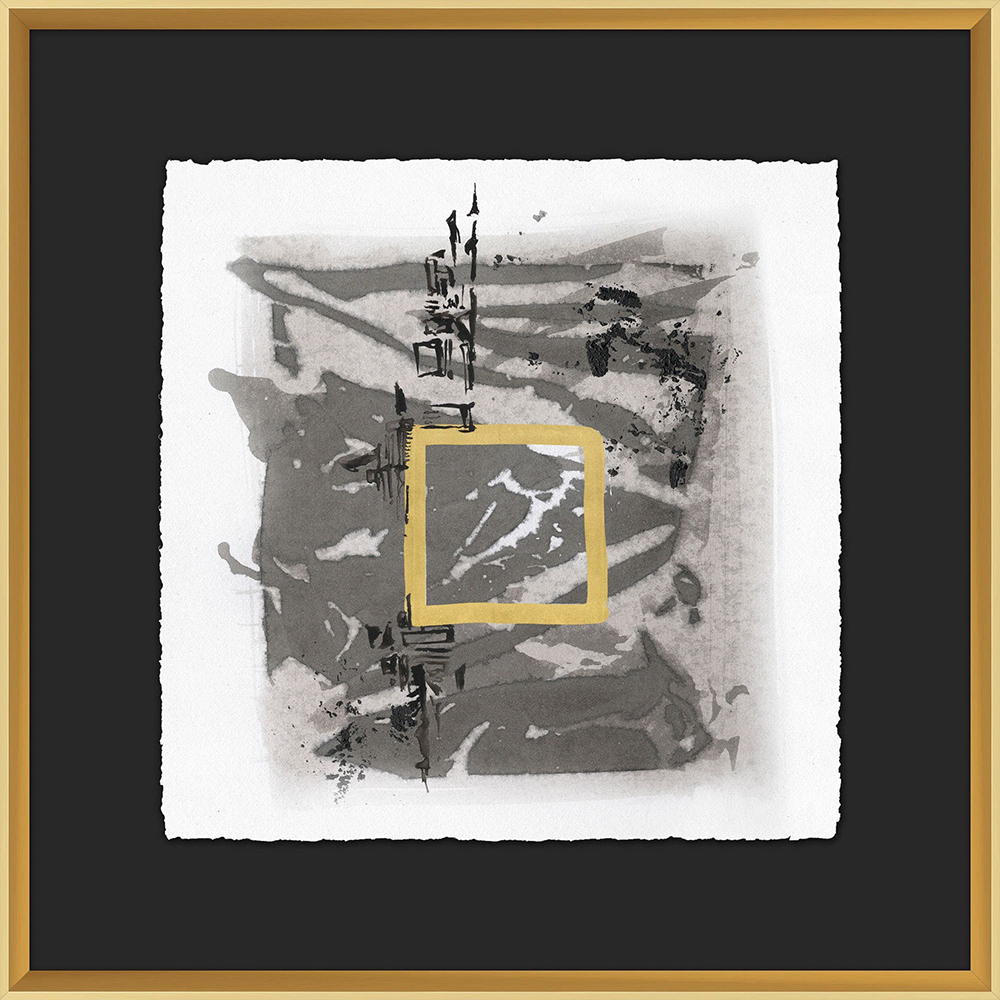 Treatment: Deckled and Floated on Mat, Framed in Shadowbox, Hand Applied Leafing